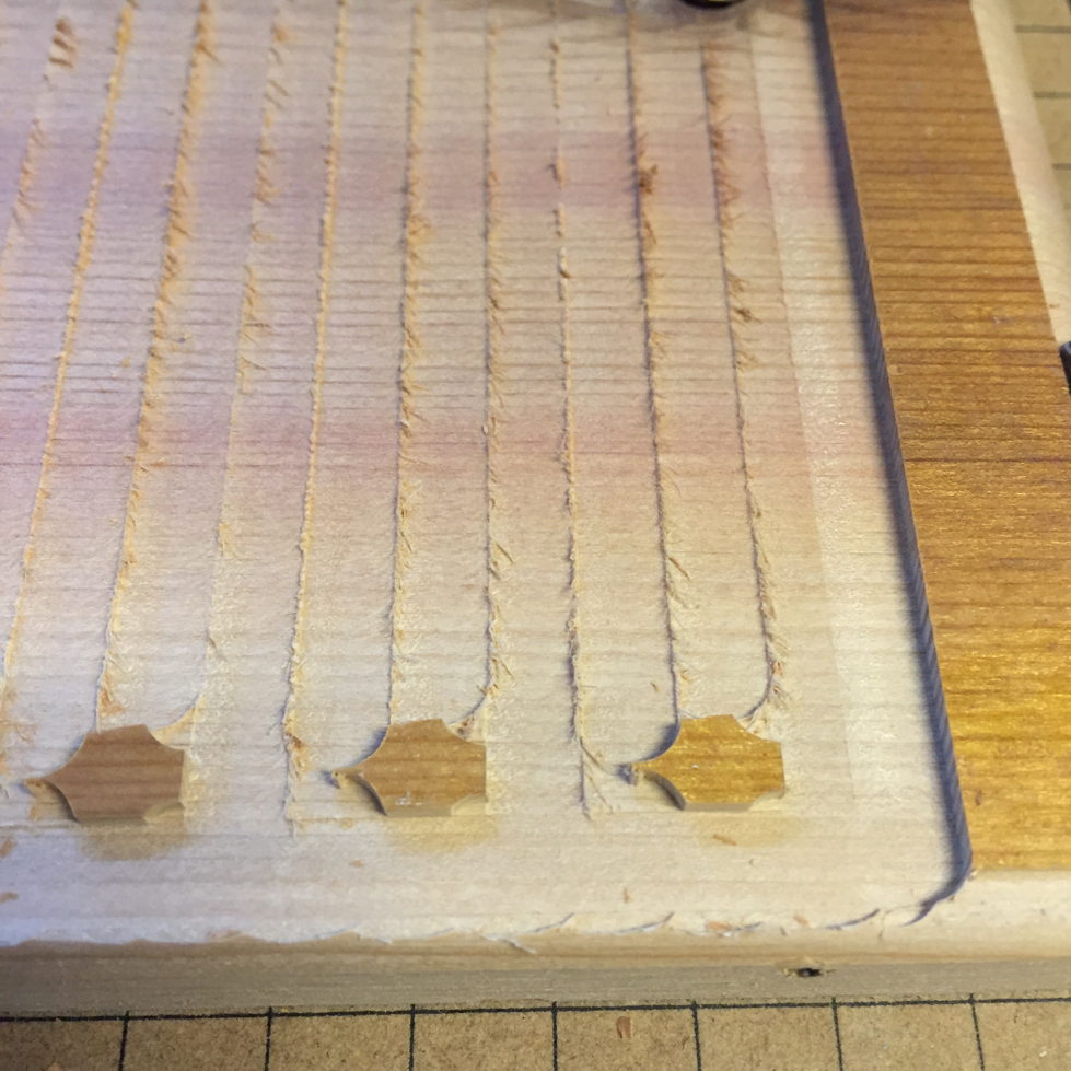 Once the new jig was carved, I sanded it and gave it a couple of coats of shellac before I tried it. If ink gets on the clean paper surface, I need to be able to clean it thoroughly and shellac provides the barrier to absorption that I need.